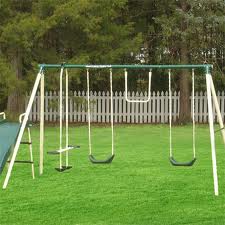The typical 1980s swing set was made of thin, tubular metal—painted white, brown, or green and often festooned with stripes, decals, or awkward rainbow stickers. Most had two plastic swings suspended by chains that pinched your fingers if you weren’t careful, a trapeze bar that no one really used, and a slide so steep and slick it could double as a bobsled run in the right weather. If you were lucky, yours had a two-seater glider—those clunky seesaw-like attachments that encouraged teamwork and bruised shins in equal measure. At the very top was a metal crossbar, the sacred backbone of the structure, often decorated with rust streaks and the faded logo of whichever department store sold it.